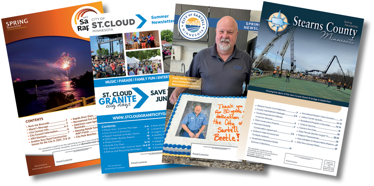 The City of Sauk Rapids Newsletter is your direct line to both residents and local businesses. Distributed to approximately 7,965 residential and business addresses in ZIP code 56379, this proven publication gives your business elevated visibility among an engaged audience that highly values the relevant city content and community updates included in every issue.